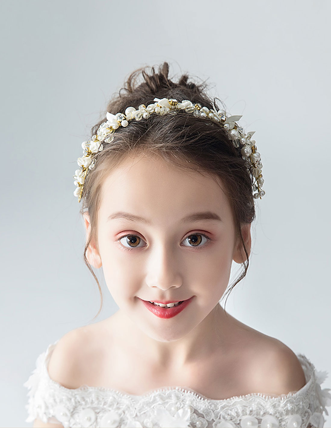 キッズ・女の子 ゴールド パール 誕生日会 パーティ用 クリスタルフラワー ヘッドドレス