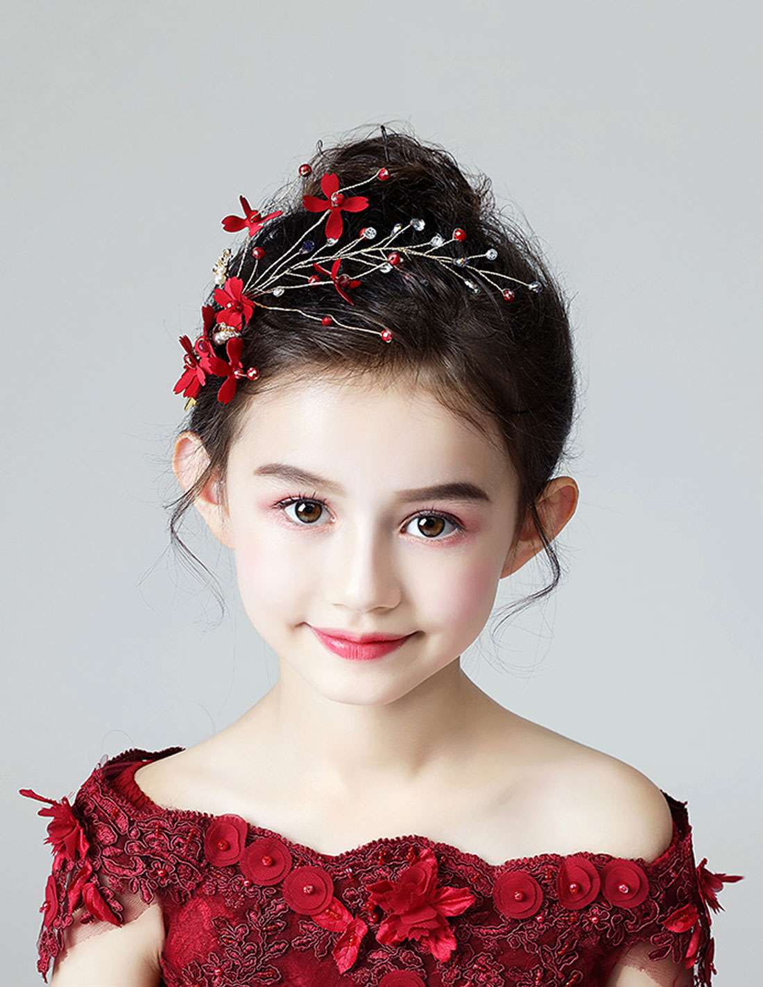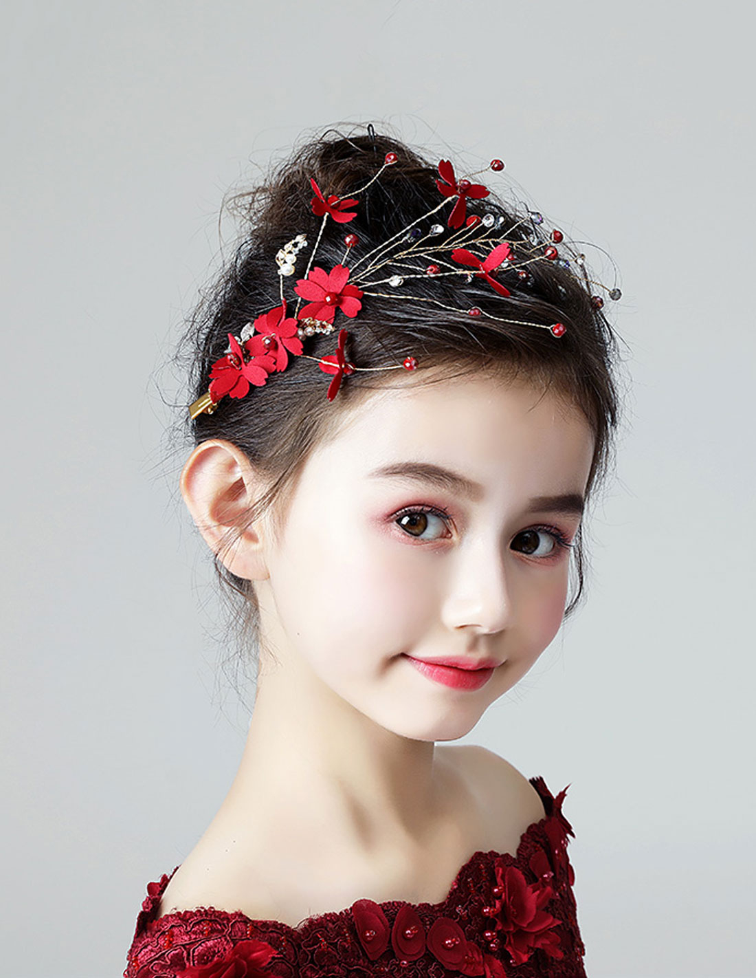 キッズ・女の子 レッド フラワー クリスタル 誕生日会 パーティ用 クリップ ヘッドドレス
