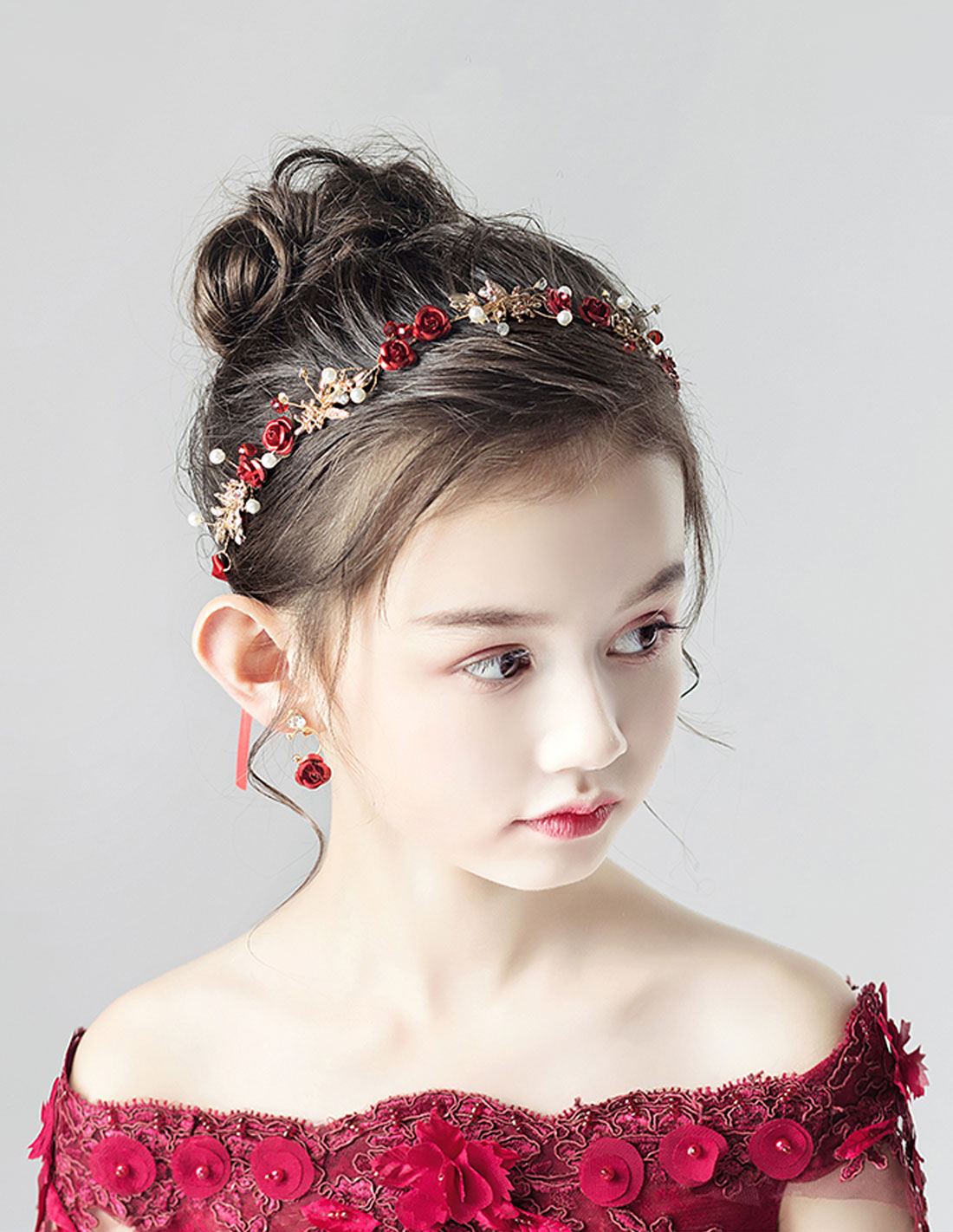 キッズ・女の子 ゴールド レッド 誕生日会 パーティ用 バラ リボン ヘッドドレス