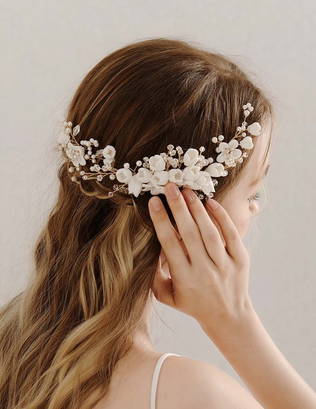 3点セット パール クリスタル フラワー ゴールド 小枝 ブライダル コーム アクセサリー