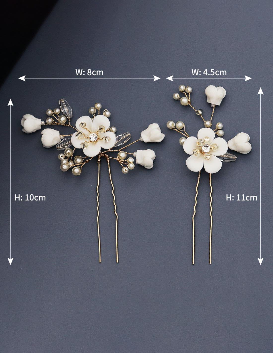 3点セット パール クリスタル フラワー ゴールド 小枝 ブライダル コーム Uピン アクセサリー