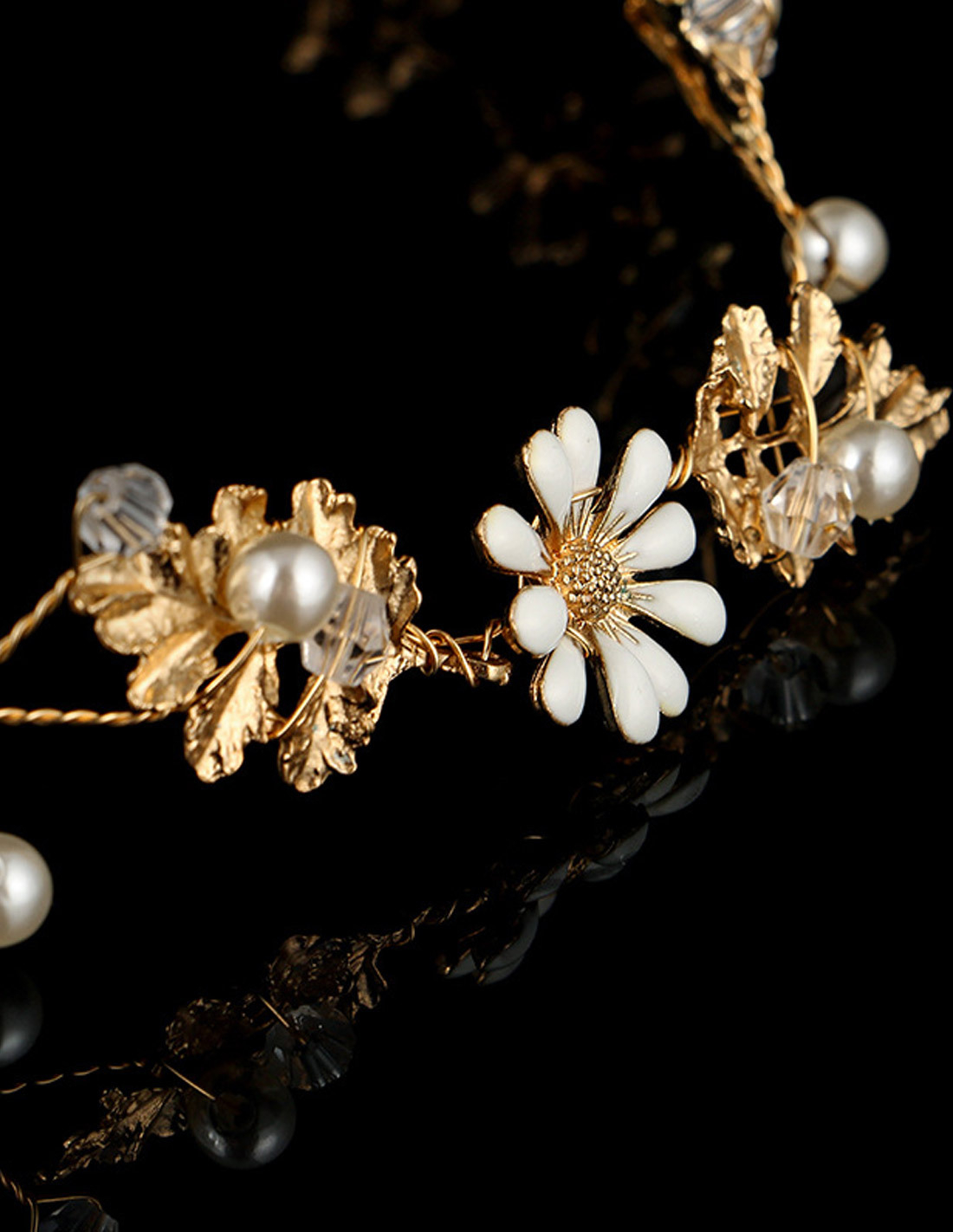 フラワー パール クリスタル ゴールド ブライダル セレモニー 花冠 ヘッドドレス