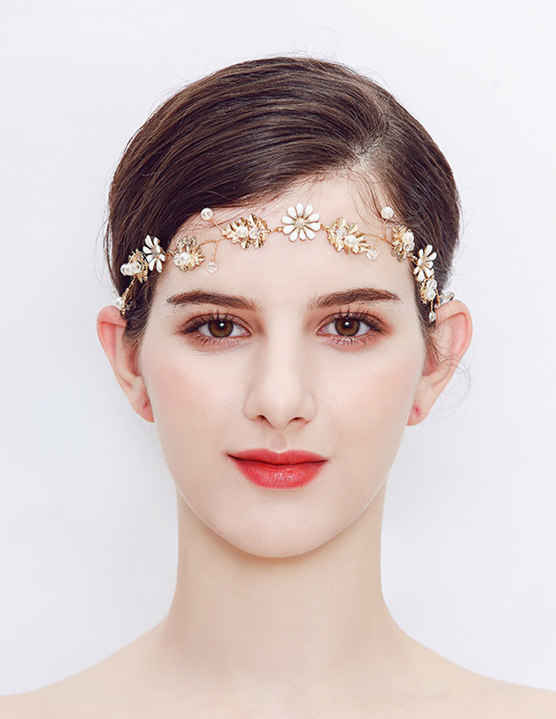 まるで本物のお花があるようなブライダル用花冠です。色はゴールドのみで、セレモニー用にもご利用いただけるお買い得なブライダルアクセサリーです。リボンはついておらず、お好みの場所にピンで固定していただくデザインのアクセサリーとなっております。三つ編みの中に編み込むこともできるので、色々なヘアスタイルに挑戦してみてください。