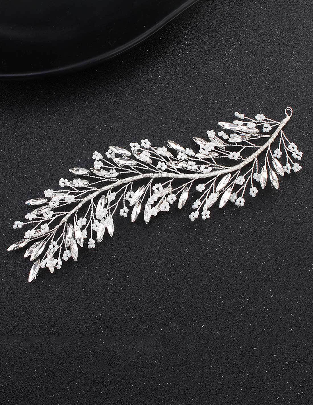 フラワー ビーズ ラインストーン シルバー ブライダル ヘッドドレス