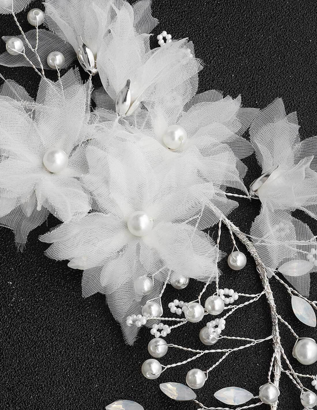 フラワー パール ビーズ シルバー ブライダル セレモニー 花冠 ヘッドドレス