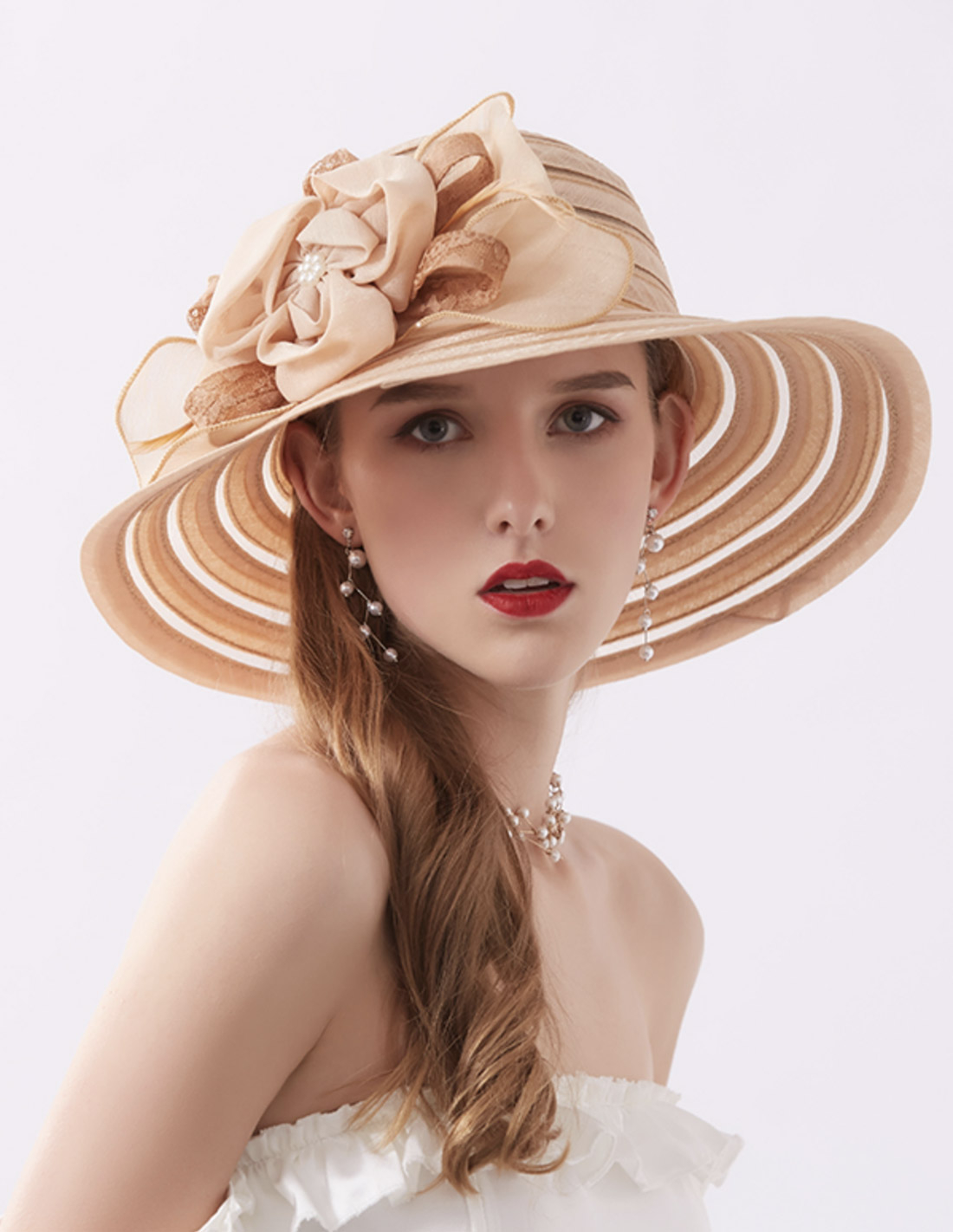 シフォン フラワー エレガント 女優帽 とても軽い ボーダー ハット