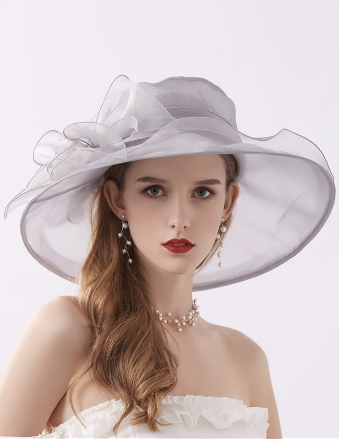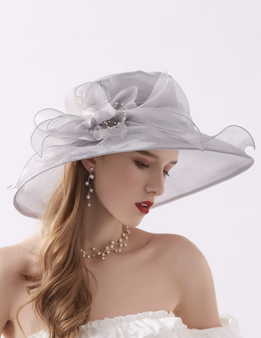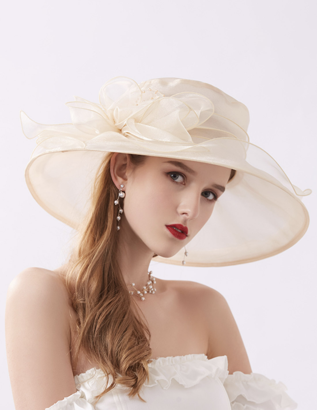 オーガンジー ビジュー フラワー エレガント 女優帽 とても軽い ハット