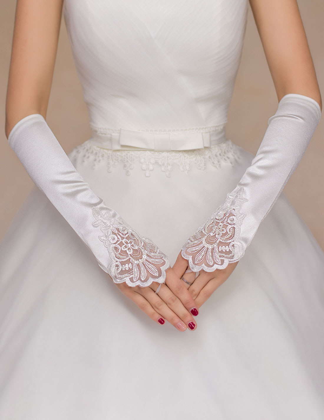 レース サテン ミディアム 結婚式 ウェディング ブライダル フィンガーレスグローブ