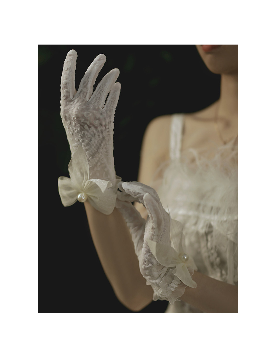 レース チュールリボン パール ショート 結婚式 ウェディング グローブ